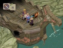 As Ryu, Nina and the others make their crossing from Shikk to Lyp on a ship, the wind suddenly stops. Zig remarks that this must be an ill omen, as they are close to the Island of Fire. Iggy suggests that the party can examine the cursed island with a dingy, so they head over.