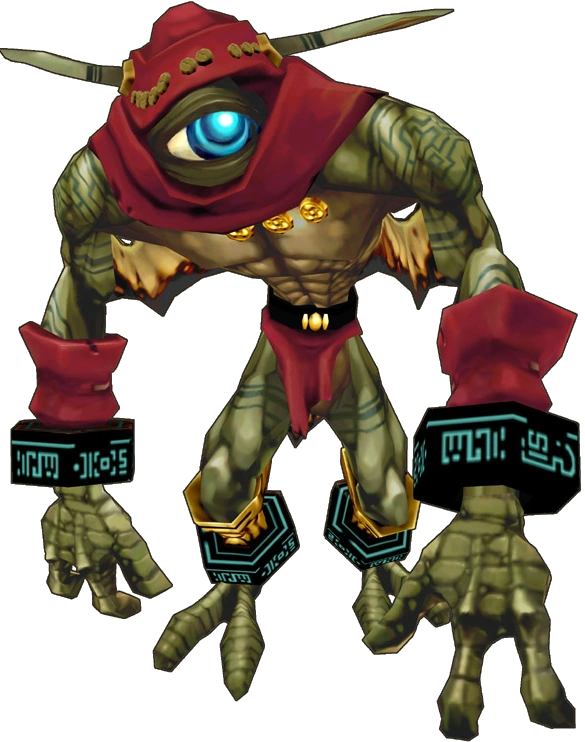 Characterized by a large single eye, the cyclops is a towering Genic built for warfare. In spite of its size, it can run fast enough to gain on a freight lift.