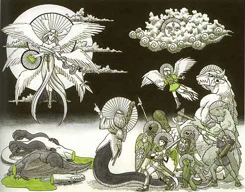 The Dragon Clan is the sworn enemy of the Goddess Myria, an ancient divine being who appears in different guises, but ultimately influencing the world negatively. Myria fears the Dragon Clan as their power rivals hers and their ability to potentially lay waste to all existence threatens her ability to control the world.